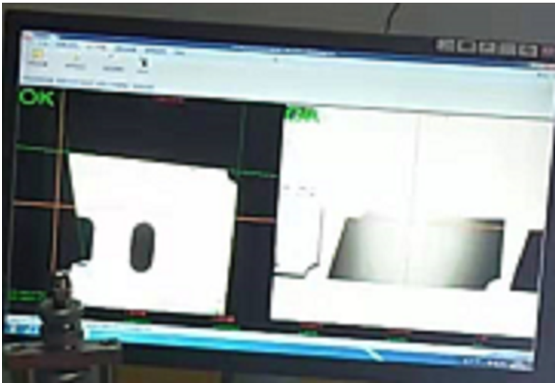 機械手上裝的上相機讀取貼合物品的位置,下相機識別貼片位置,機械手吸取貼片,讀取偏移量進行多次對位,完成貼合。