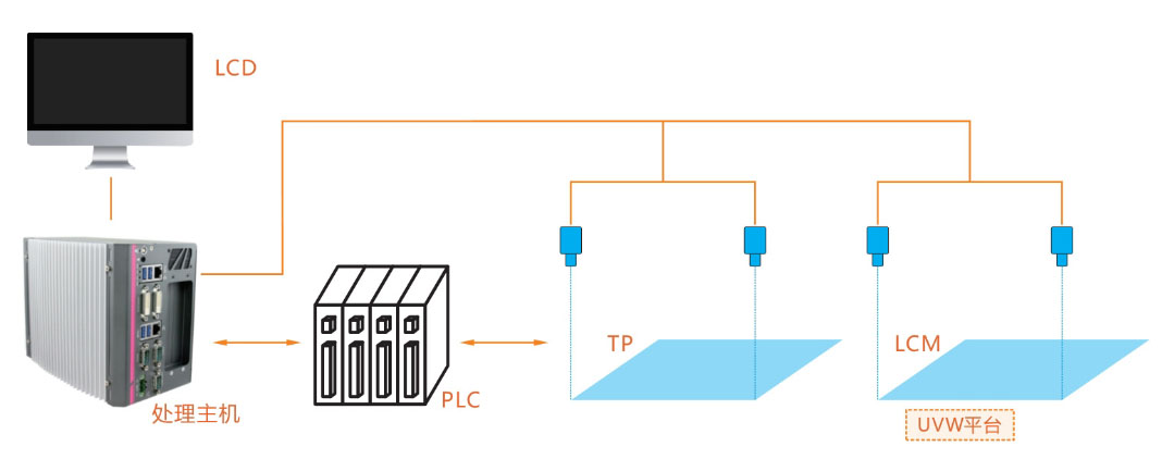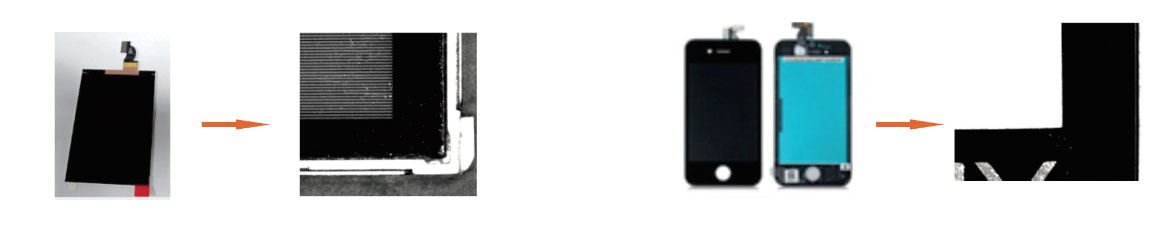 Touch Panel相機抓取角點后,通過相機數(shù)據(jù)映射功能,映射到LCM相機坐標(biāo)系作為對位基準(zhǔn),調(diào)整LCM進行居中對位貼合,精度可達(dá)±0.03mm.
