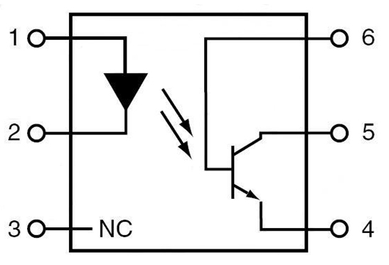 圖二 光電耦合器之內部結構圖 三極管接收型 6腳封裝