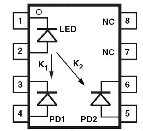 圖五 光電耦合器之內部結構圖 雙二極管接收型 6腳封裝