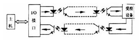 在電腦應用系統(tǒng)中,由于測控系統(tǒng)與被測和被控設備之間不可避免地要進行長線傳輸,信號在傳輸過程中很易受到干擾,導致傳輸信號發(fā)生畸變或失真;另外,在通過較長電纜連接的相距較遠的設備之間,常因設備間的地線電位差,導致地環(huán)路電流,對電路形成差模干擾電壓。為確保長線傳輸的可靠性,可采用光電耦合隔離措施,將2個電路的電氣連接隔開,切斷可能形成的環(huán)路,使他們相互獨立,提高電路系統(tǒng)的抗干擾性能。若傳輸線較長,現場干擾嚴重,可通過兩級光電耦合器將長線完全“浮置”起來,如圖8所示。