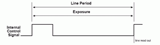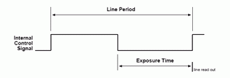 由外部送來的訊號作為同步觸發(fā)訊號, 但此上升方波僅作為開始曝光的決定訊號, 曝光時(shí)間長短可由使用者設(shè)定, 同時(shí)此設(shè)定的曝光時(shí)間也決定線周期時(shí)間。