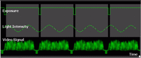在選擇輔助光源時(shí),切勿將區(qū)域掃描(Area-scan)用的交流電(AC Power)光源在線性掃描(Line-scan)上,線性掃描應(yīng)該選用交流電(DC Power)光源作為輔助, 以下是簡單的介紹有關(guān)攝影機(jī)曝光成像時(shí)間與光源頻率之間的互動(dòng)關(guān)系。