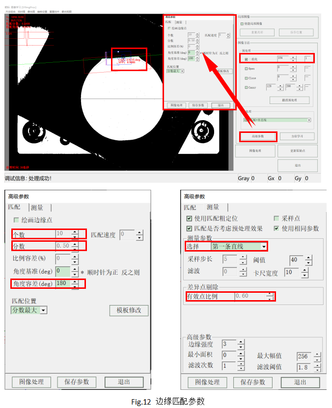 ? Step3:如下圖11所示,下拉重新選擇“邊緣匹配+單直線”,黃色的模板框工具則會(huì)顯示出來(lái),通過(guò)拖拽調(diào)整使模板框位置和大小合適,再點(diǎn)擊“方法學(xué)習(xí)”,則學(xué)習(xí)記錄當(dāng)前的模板。