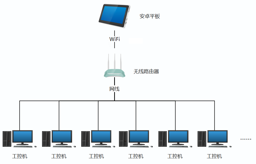 一、將所需要遠(yuǎn)程控制的工控機(jī)通過(guò)網(wǎng)線連接到具有WiFi功能的路由器上,將安卓平板連接上WiFi,如下圖所示