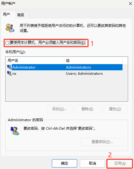 取消勾選要便用本計(jì)算機(jī),用戶必須輸入用戶名和密碼