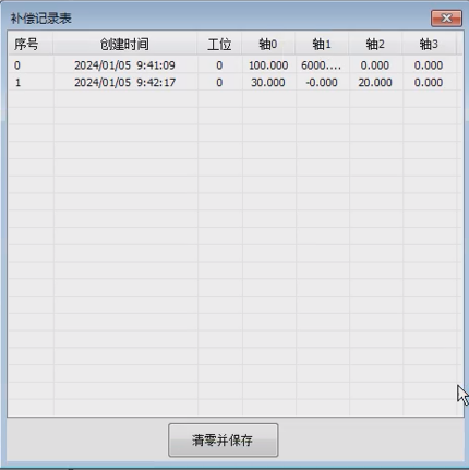 補償記錄表:點擊打開可以看到補償?shù)男蛱?、?chuàng)建時間、工位,軸的補償數(shù)值;