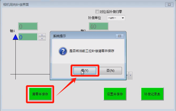 清零并保存:點擊“清零并保存”在彈出提示框點擊“是”會將當(dāng)前的補償值清零并保存于文件中;