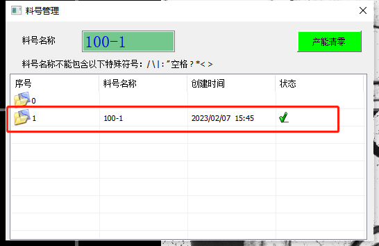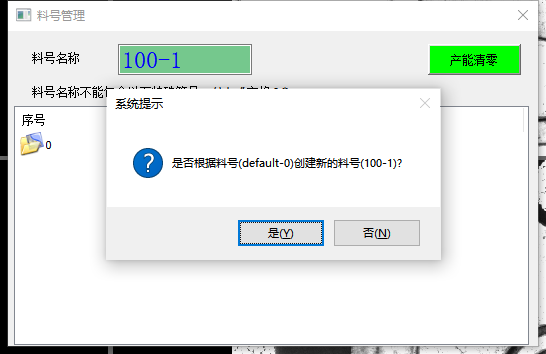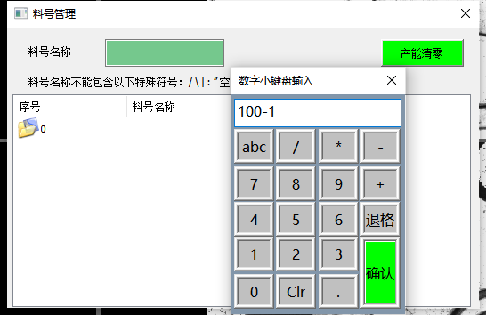2. 料號名稱輸入格式:料號名稱-序號,如100-1,輸入完成選擇“確認(rèn)”