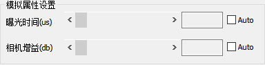 3. 以圖像一為例需要調(diào)整亮度,打開“相機(jī)設(shè)置”,選擇“一”,找到模擬屬性設(shè)置(圖8):使用曝光時間(us)、相機(jī)增益(db)進(jìn)行亮度調(diào)整,調(diào)整完成后選擇“設(shè)置/保存”。在圖像亮度滿足的情況下,優(yōu)先調(diào)整曝光時間(us),而相機(jī)增益(db)不宜調(diào)整過大,否則圖像容易產(chǎn)生噪點(diǎn)
