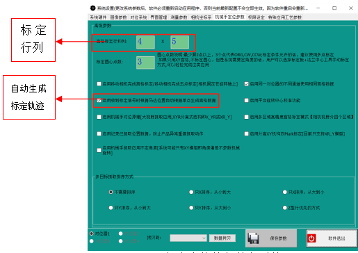 系統(tǒng)采用宮格標(biāo)定,自定義行列數(shù)和間距及旋轉(zhuǎn)角度,通過機(jī)械手發(fā)送的當(dāng)前機(jī)械坐標(biāo),視覺軟件自動計算出宮格機(jī)械坐標(biāo),視覺軟件與機(jī)械手進(jìn)行網(wǎng)口通訊,機(jī)械手吸取物料到達(dá)指定的機(jī)械坐標(biāo),相機(jī)拍攝物料計算出像素坐標(biāo)和機(jī)械坐標(biāo)的關(guān)系。