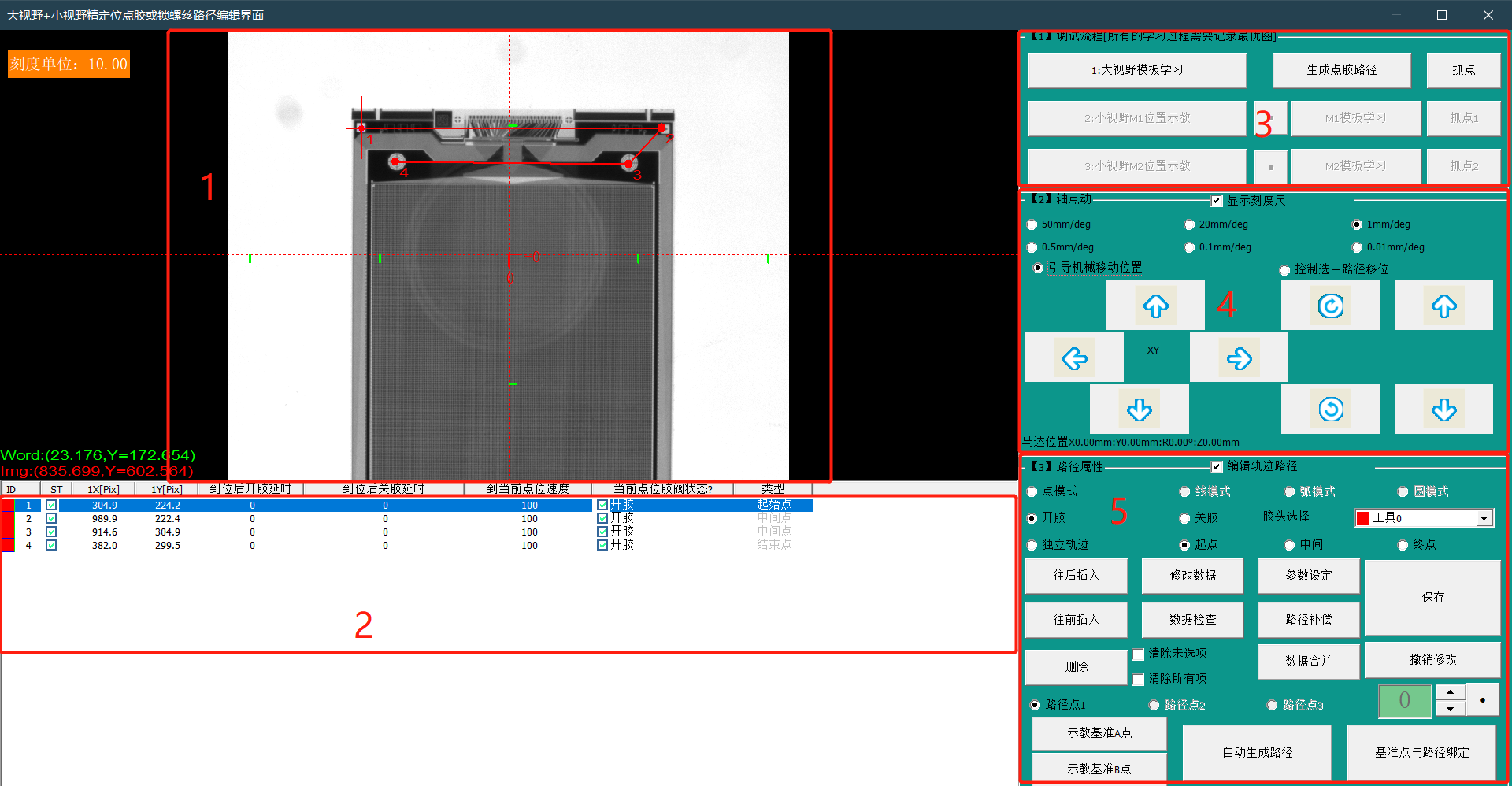 2、 快速兼容產(chǎn)品輪廓,引導(dǎo)機(jī)械手精準(zhǔn)對物料點膠;