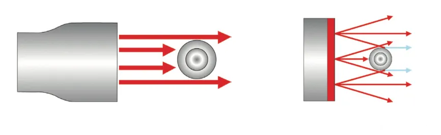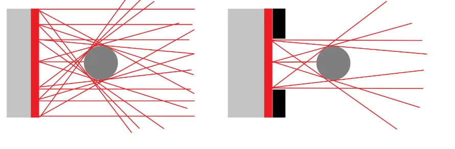 光源的發(fā)散度越小,光源就越適合用于遮擋照明。圖2展示了準(zhǔn)直光和發(fā)散光源如何與被檢查對(duì)象進(jìn)行不同的相互作用。