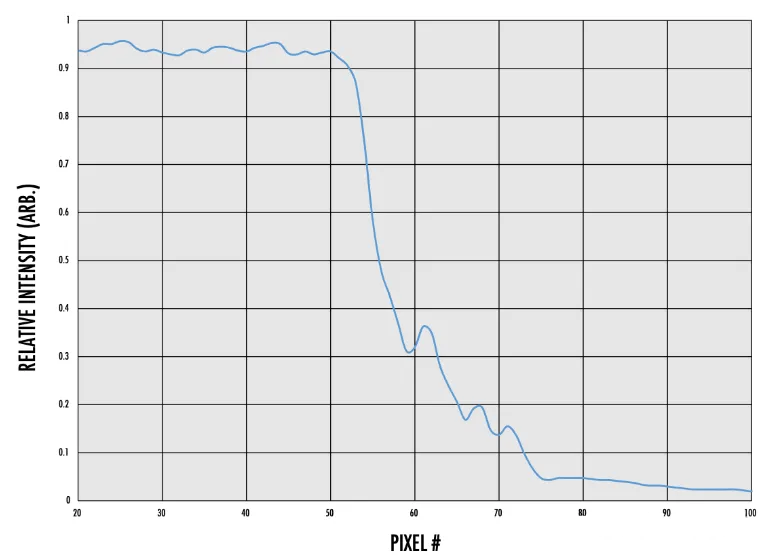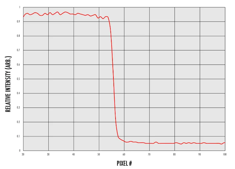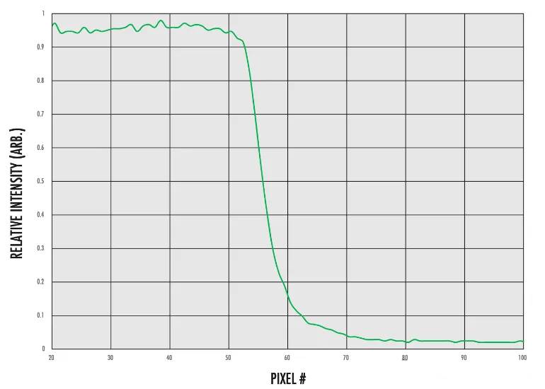 當(dāng)查看邊的強(qiáng)度輪廓時(shí),會(huì)確認(rèn)干凈邊的外觀。圖11顯示了從亮到暗的過(guò)渡過(guò)程中更陡的斜率,發(fā)生在大約20個(gè)像素上,并且沒(méi)有像圖6中那樣受到噪聲的影響。
