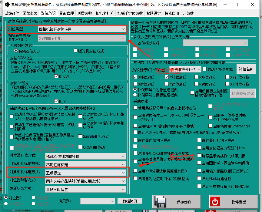 運(yùn)行參數(shù)包括對(duì)位設(shè)置、高級(jí)參數(shù)設(shè)置、五點(diǎn)標(biāo)定、補(bǔ)償。