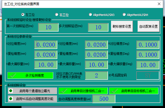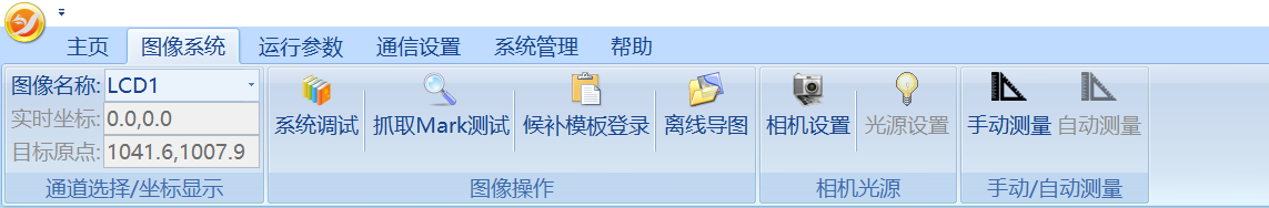 圖像系統(tǒng)包括主模板登錄、抓取mark測(cè)試、候補(bǔ)模板登錄、離線導(dǎo)圖、手動(dòng)對(duì)位、相機(jī)設(shè)置。