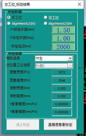 注釋:標(biāo)定計(jì)算出來的視野寬,高要和實(shí)際視野接近,否則標(biāo)定結(jié)果就是錯(cuò)誤的,另外X像素精度和Y像素精度要接近,否則標(biāo)定結(jié)果就是錯(cuò)的。