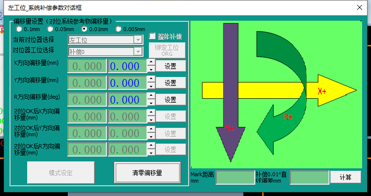 根據(jù)補(bǔ)償方向圖示,在右側(cè)對(duì)應(yīng)的方向補(bǔ)償寫入補(bǔ)償數(shù)值后,點(diǎn)擊“設(shè)置”累加到左側(cè)的總補(bǔ)償參數(shù)中。