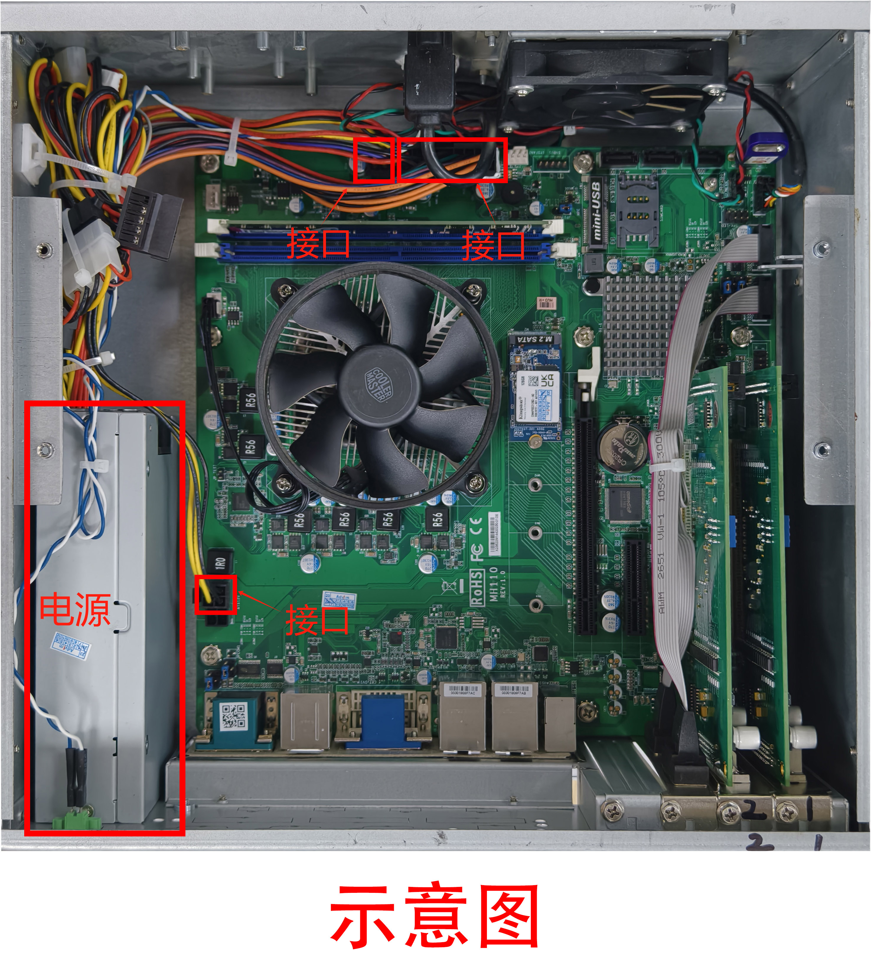 4.下一步將電源輕輕放進(jìn)工控機(jī),注意電源口位置要對(duì)接好,突出放置。