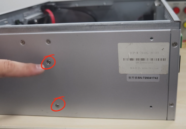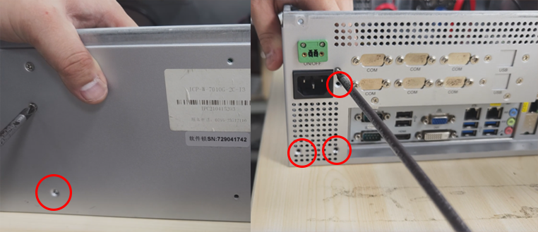 1.首先卸下工控機(jī)擋板的兩顆螺栓,將工控機(jī)的擋板拆下。