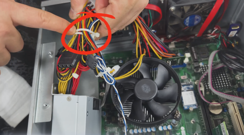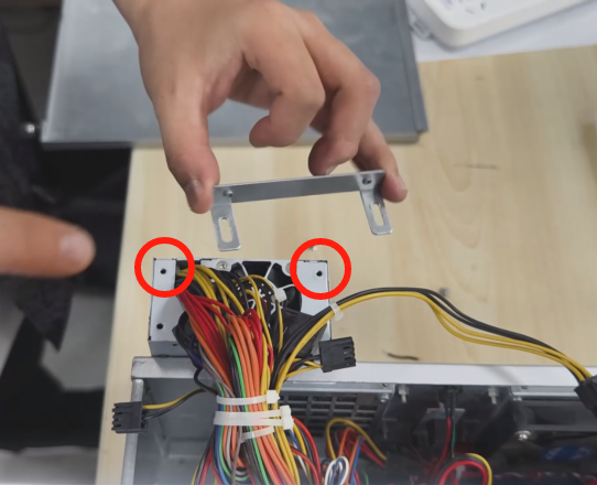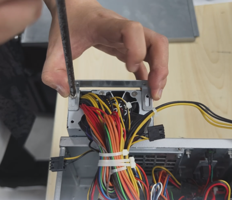 5.(注:拔出前先確認(rèn)下線材有沒(méi)有被扎帶捆住,有的話要剪掉再拆電源)所有螺絲拆除后,將電源輕輕拆除即可;