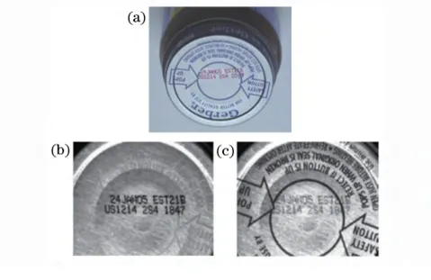圖5 鋁合金瓶蓋紅色與藍(lán)色照明成像效果 (a)待測瓶蓋 (b)紅色光照明結(jié)果 (c)藍(lán)色光照明結(jié)果