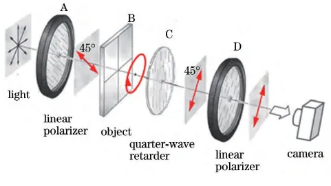 由于材料原因或者制造過程形成的應(yīng)力,使材料的結(jié)構(gòu)發(fā)生形變或產(chǎn)生微裂紋。這會(huì)導(dǎo)致材料的折射率發(fā)生變化,產(chǎn)生光學(xué)各向異性,出現(xiàn)雙折射現(xiàn)象。利用透射式偏振成像系統(tǒng)可以檢測材料的應(yīng)力變化,當(dāng)偏振光對(duì)樣品進(jìn)行照明時(shí),由于雙折射的影響透射光的偏振態(tài)會(huì)發(fā)生改變。相機(jī)前放置的偏振片讓特定振動(dòng)方向的偏振光通過,透射光光強(qiáng)隨之改變,因此可以根據(jù)檢測樣品圖像的明暗分布情況分析應(yīng)力變化。