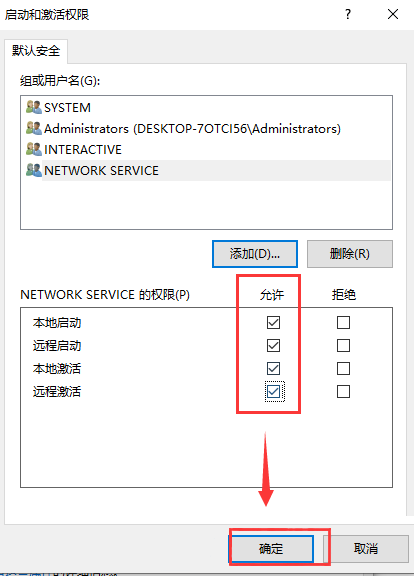 3、啟動(dòng)和激活權(quán)限(你可以編輯默認(rèn)情況下允許啟動(dòng)應(yīng)用程序或激活對(duì)象的用戶(hù)。你也可以在應(yīng)用程序上設(shè)置限制以決定其權(quán)限)–編輯默認(rèn)值–添加NETWORKSERVICE–勾選允許所有權(quán)限,最后全部確定退出即可;