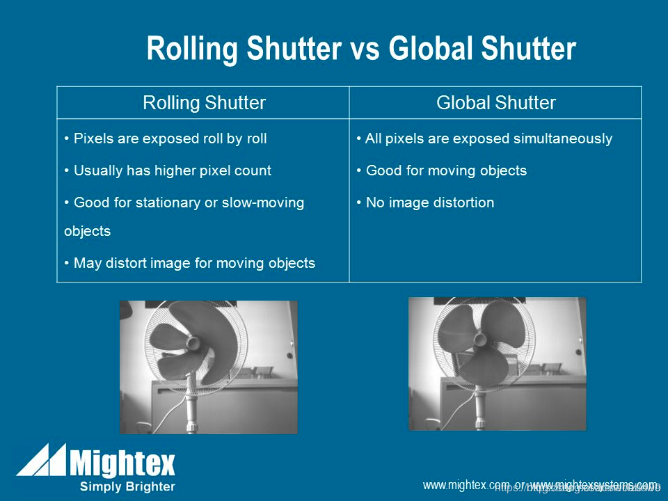 Globalshutter 曝光時間更短,但會增加讀出噪聲;