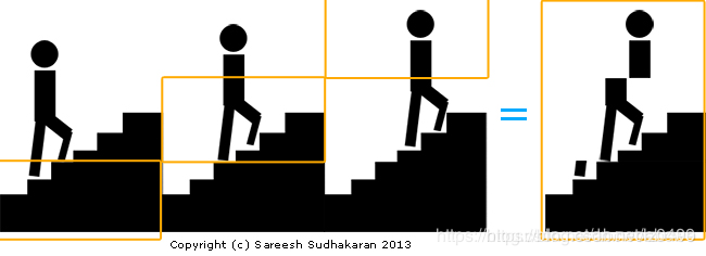 看看下面的圖片。 想象一下,每個橙色框都是一個像素,我們的圖像只有三個像素。 當(dāng)我們的英雄爬上樓梯時,像素一次被讀取一個,從而導(dǎo)致最后一幀的滯后。