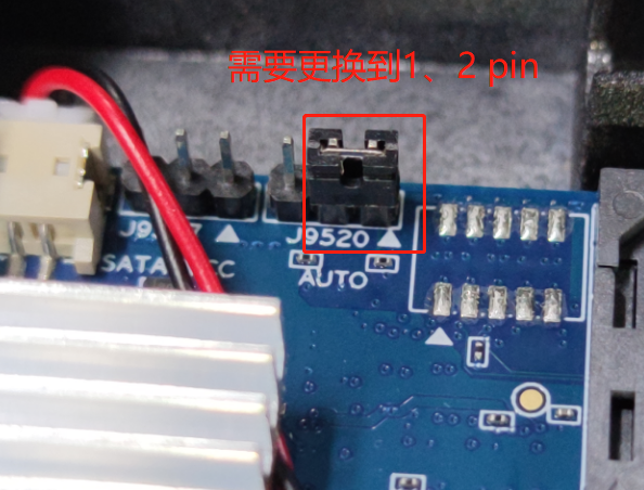 2、找到J9520,出廠默認(rèn)是接了2、3 PIN,不會上電自動開機,需要更換成1、2 PIN