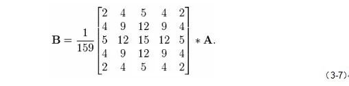 以一個5×5的高斯濾波模板為例(見公式3-7),對圖像A應(yīng)用高斯濾波可得B。下面對圖像的光強(qiáng)梯度統(tǒng)計都基于圖B。