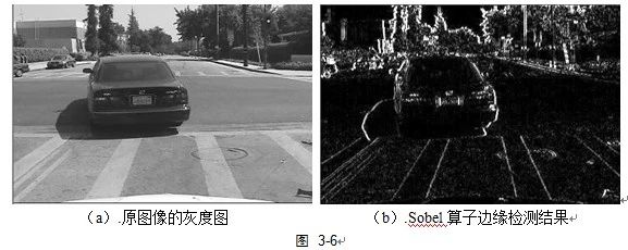 公式3-9中,*表示二維卷積運(yùn)算。這里建立的坐標(biāo)系在x坐標(biāo)方向向右,y坐標(biāo)方向向下,在圖像中的每個點(diǎn),用式3-8描述總梯度大小及方向。用Sobel算子進(jìn)行邊緣檢測結(jié)果見圖 3?6所示。