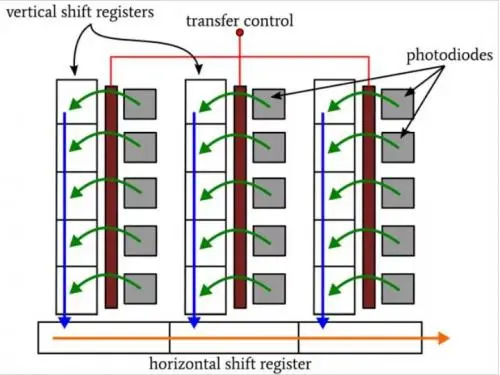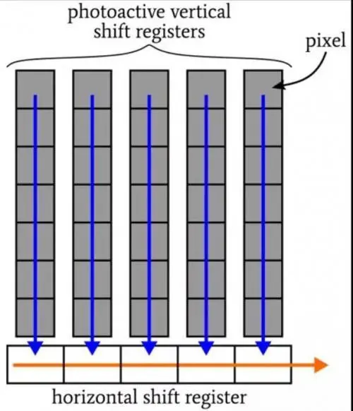 半導(dǎo)體區(qū)域既可以作為光電元件,也可以作為電荷轉(zhuǎn)移器件,這有點(diǎn)違反直覺(jué),但這正是 FF CCD 中發(fā)生的事情。在集成過(guò)程中,像素位置響應(yīng)入射光子積累電荷,在集成之后,電荷包垂直地通過(guò)像素位置向水平移位寄存器移動(dòng)。
