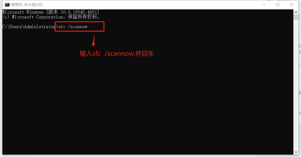 2、在 CDM 窗口中執(zhí)行如下命令:sfc /scannow