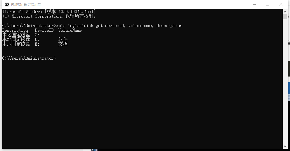 在 Windows 環(huán)境外執(zhí)行 SCF 修復(fù)時,必需要告訴它哪個是 Windows 安裝盤和系統(tǒng)保留分區(qū),在命令行中執(zhí)行如下命令可以查看 Windows 系統(tǒng)分區(qū)的盤符:輸入’wmic logicaldisk get deviceid, volumename, description’