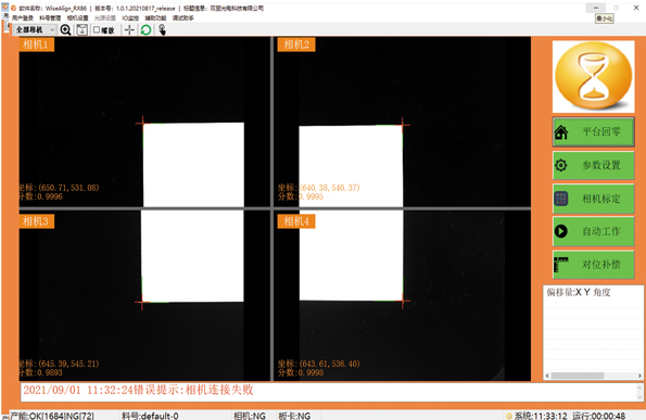 WiseAlign-4C雙相機自對位在工業(yè)自動化中應(yīng)用非常廣泛,機構(gòu)工藝簡單易實現(xiàn),軟件操作簡單容易上手。此案例中用戶的模切機使用WiseAlign軟件進行高精度的對位生產(chǎn)應(yīng)用,在對位時候其精度可達±0.02mm,而對位時間在0.4s內(nèi)完成。