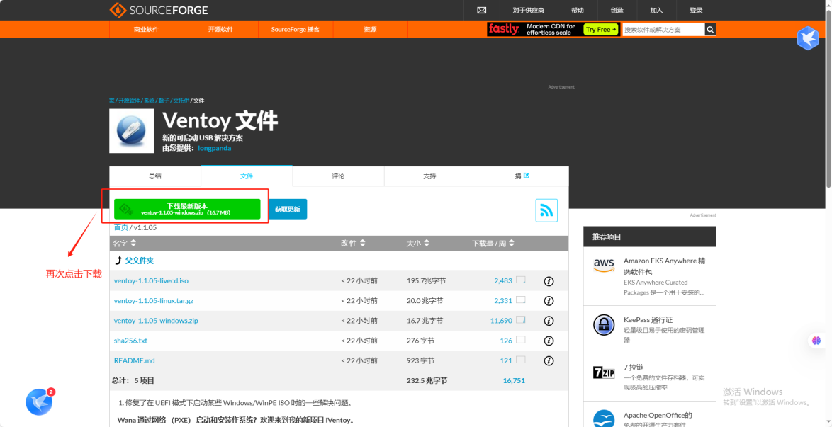 點(diǎn)擊“Download.Ventoy”進(jìn)入Ventoy下載頁面,并選擇Windows版下載