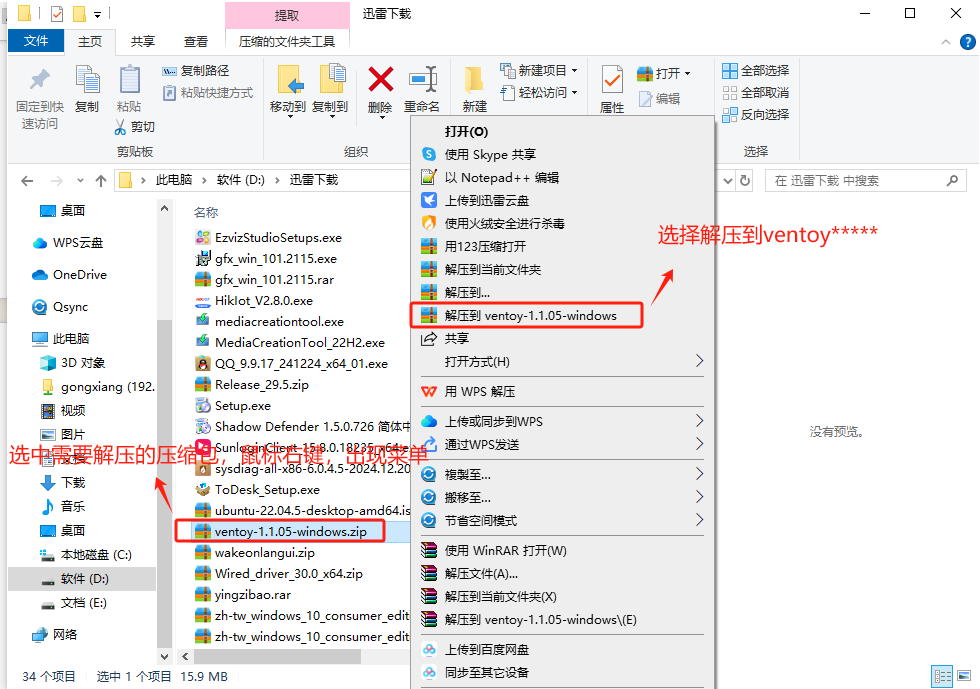 下載成功后,將文件“ventoy-1.1.05-windows.zip”解壓