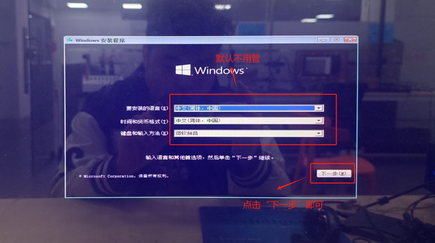 進(jìn)入系統(tǒng)安裝頁面,點(diǎn)擊“下一步”