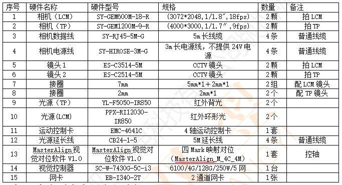硬件配置清單如下: