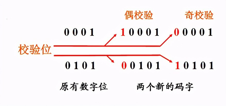 原理是在k位數(shù)據(jù)碼之外增加1位校驗(yàn)位,使得K+1位碼字中取值1的位數(shù)總保持為偶數(shù)(偶效驗(yàn))或奇數(shù)(寄校驗(yàn)),舉一個(gè)例子: