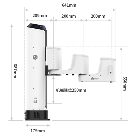 無獨有偶,越疆的M1系列,也是采用了相同的構(gòu)型,不同的是越疆的手臂更粗壯一些,不可折疊,意味在狹小的空間里操作將會有所限制。