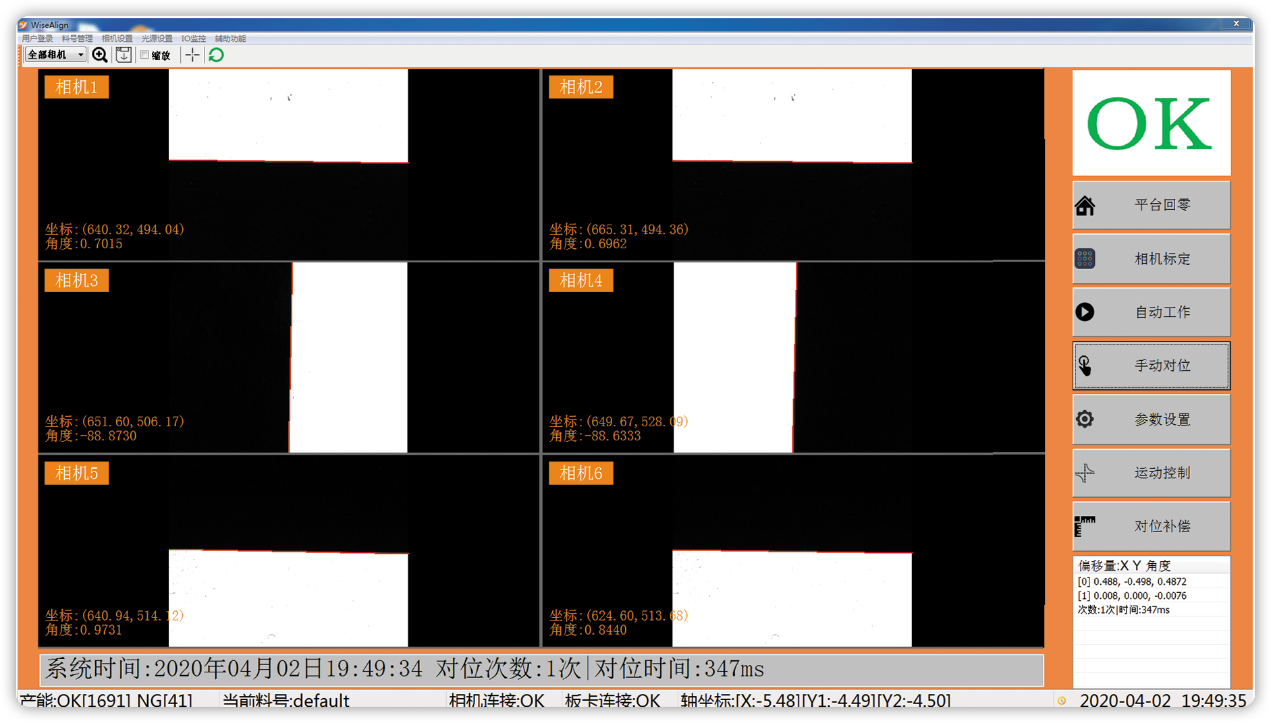 1.六相機(jī)方案利用兩個(gè)相機(jī)看長邊方向,更好的把控長邊方向的角度誤差,提供對位精度;