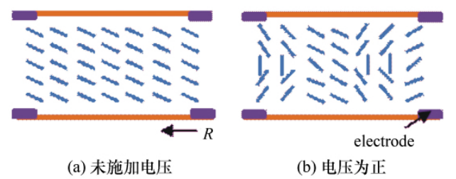 液晶型液態(tài)鏡頭利用電場(chǎng)控制液晶分子取向,通過(guò)改變等效折射率分布實(shí)現(xiàn)調(diào)焦。這種技術(shù)驅(qū)動(dòng)電壓低、易于微型化,在便攜式檢測(cè)設(shè)備中具有明顯優(yōu)勢(shì)。但是該類鏡頭驅(qū)動(dòng)電壓較低,受到電場(chǎng)強(qiáng)度和均勻性的限制,難以實(shí)現(xiàn)近焦成像,并且容易造成圖像的光學(xué)失真。