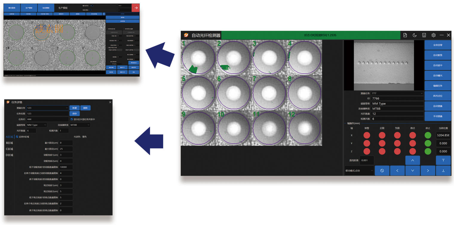 3. 全規(guī)格兼容,柔性適配:采用模塊化夾具設(shè)計(jì)與自適應(yīng)算法,無(wú)需更換硬件即可實(shí)現(xiàn)對(duì)400G、800G、1.6T等主流光模塊,以及MT、MPO、MMC、SN-MT等全品類連接器的檢測(cè)適配。設(shè)備支持自定義缺陷判定參數(shù)與檢測(cè)區(qū)域劃分,可根據(jù)不同客戶的質(zhì)量標(biāo)準(zhǔn)快速調(diào)試。
