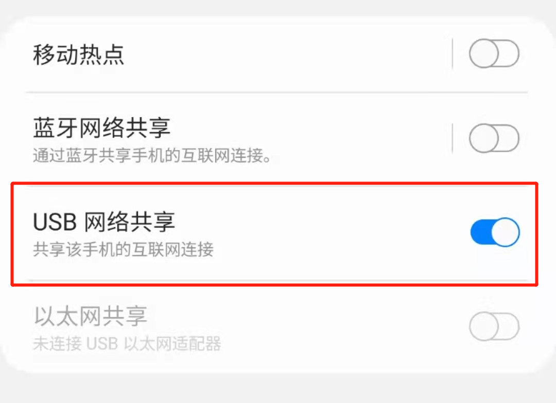 5.打開USB網(wǎng)絡(luò)共享