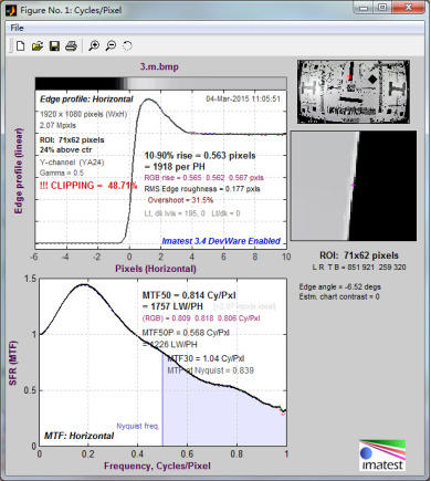 ImageJ 需要下載安裝 Slanted Edge Modulation Transfer Function 插件,需要注意的是只能測量豎直傾斜邊緣,從左至右由黑變白的矩形框,具體選項(xiàng)設(shè)置參考如下,sensor size單位是mm。
