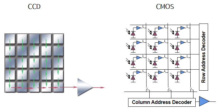 由于光電轉(zhuǎn)換設備和放大設備都是針對微觀的電荷進行操作。就需要一個精密的器件來完成這兩個過程,我們常用的是CCD和COMS。