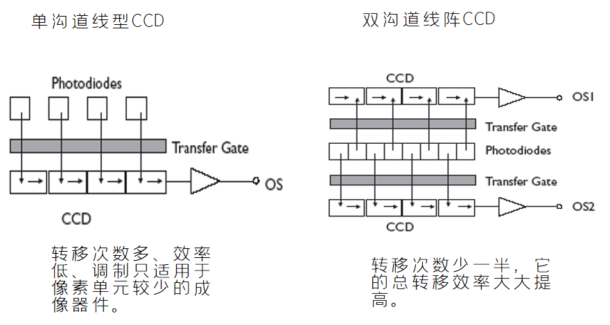 上面所述,都是按照,單行,單列的模式進行電荷傳輸?shù)摹F鋵?,如果單行的像素太多,會影響傳輸速度。這時可以使用多溝道傳輸。